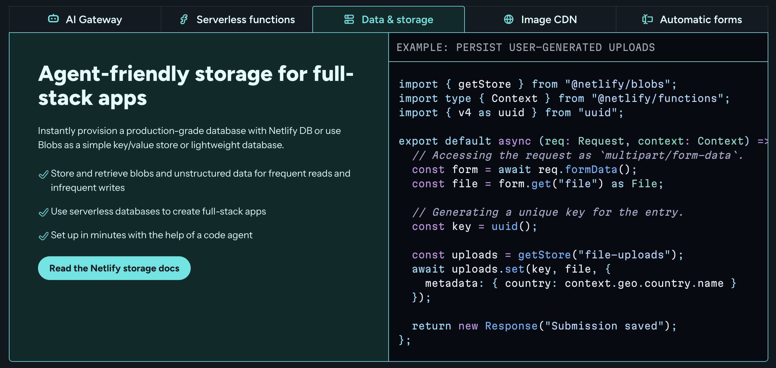 From vibe coding your first app to serving millions of users, Netlify handles the infrastructure so you can focus on building. No DevOps required. No complex setup. No surprise bills when you scale.